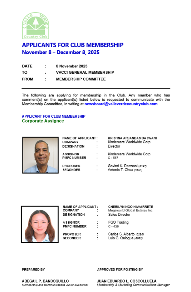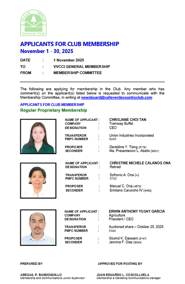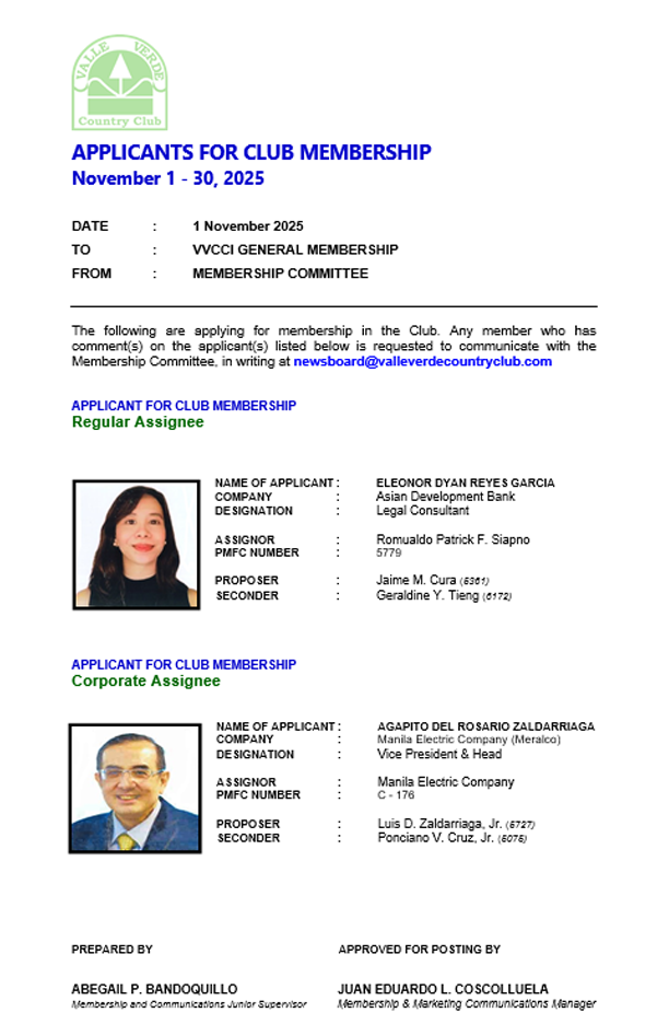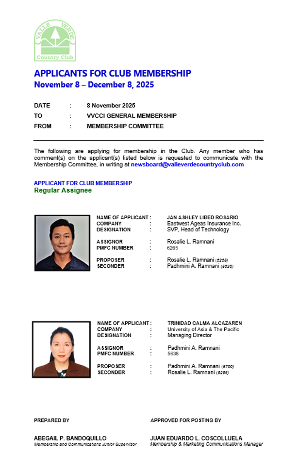 CLUB MEMBERSHIP APPLICANTS